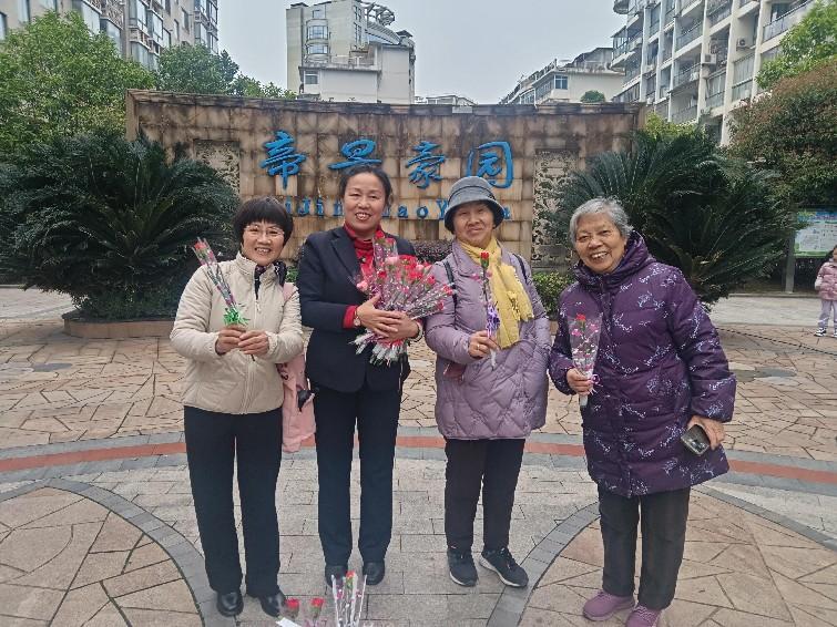 公務(wù)員小區(qū)和怡景嘉苑小區(qū)開展了為小區(qū)女性業(yè)主送鮮花,口腔義診、套圈游戲等活動。