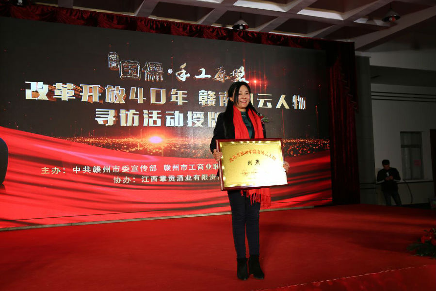 由中共贛州市委宣傳部、贛州市工商聯、贛州廣播電視臺主辦,江西章貢酒業有限責任公司協辦的“改革開放四十年贛南風云人物”尋訪活動授牌儀式,3月15日在章貢酒業公司隆重舉行。會上,中共贛州市委常委、宣傳部部長彭業明,贛州市政協副主席、工商聯會長華旭明為濃縮著贛南改革開放的輝煌成就的二十二位“改革開放四十年贛南風云人物” 授牌。江西燕興物業管理有限公司黨委書記、董事長劉燕獲此殊榮并出席授牌儀式。