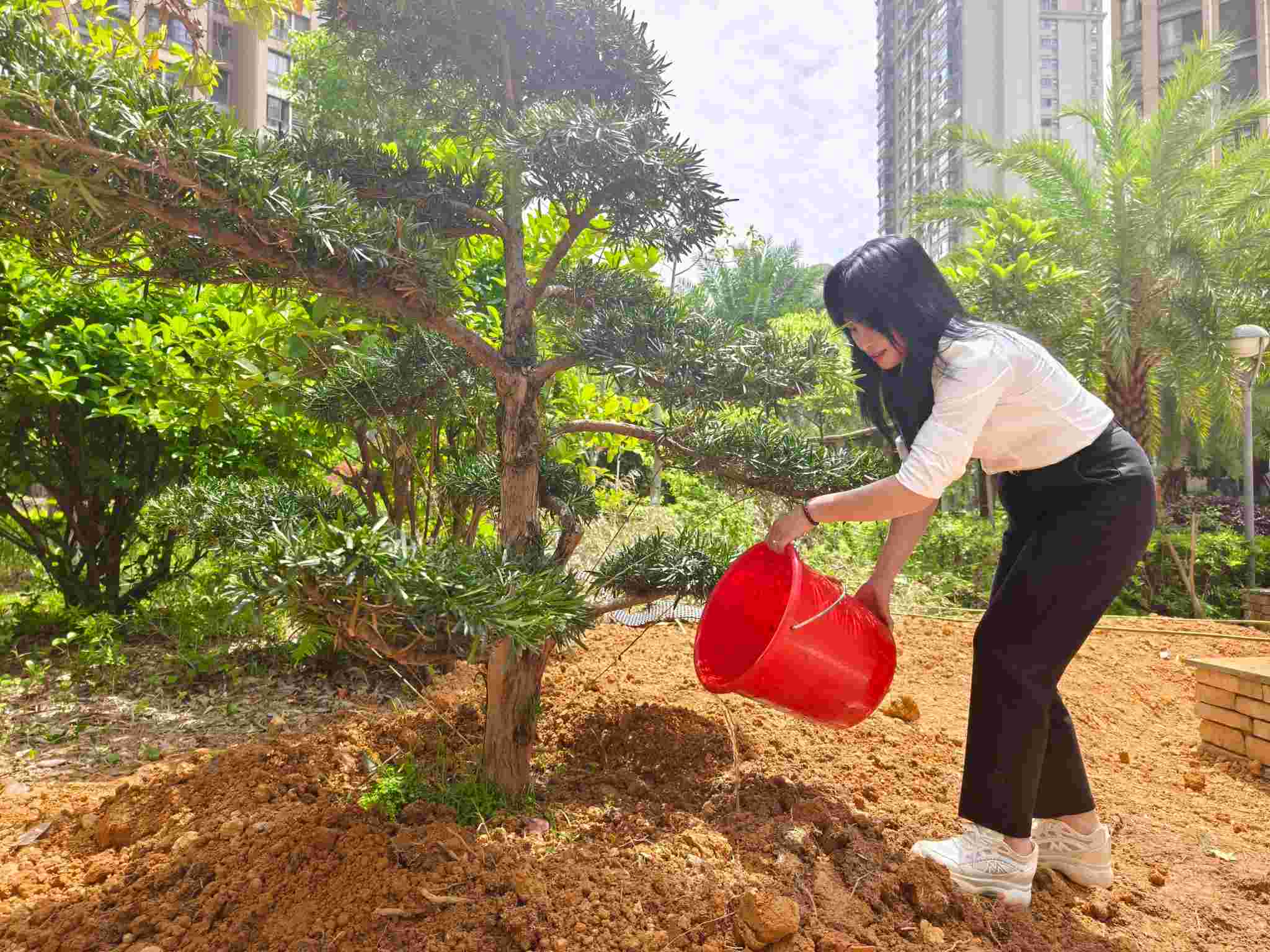 在園區(qū)的沃土上,正用鐵鍬與汗水譜寫一曲春天的交響。栽下一棵造型金葉女貞樹,埋進對物業(yè)服務初心的堅守;扶正一棵造型羅漢松樹,托起對生態(tài)文明的承諾。濕潤的泥土裹著青草香,在交錯的掌紋間傳遞著生命的溫度。我們將根系深埋,用服務作養(yǎng)料,以愛心化春雨。