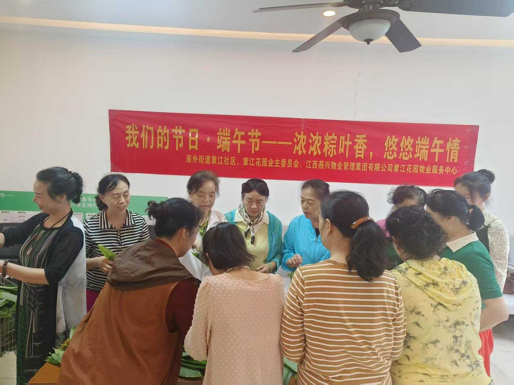 章江花園小區聯合南外街道章江社區、章江花園業主委員會開展“濃濃粽葉香 悠悠端午情”我們的節日端午節主題活動。活動現場,經驗豐富的業主們手法嫻熟,卷粽葉、填糯米、封口扎捆一氣呵成;新手們也熱情高漲,在“老師”的指導下,認真學習包粽技巧。大家圍坐在一起,有說有笑,互相交流經驗,不一會兒,形態各異的粽子擺滿了桌面。